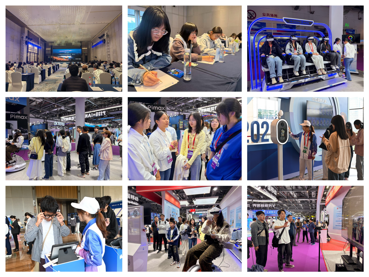 本届大会以“VR让世界更精彩——VR+AI开启数智未来”为主题,全球虚拟现实领域的专家学者和产业精英汇聚于此,共话前沿技术趋势与产业融合蓝图。在开幕式及各分论坛现场,学生们认真聆听了全球VR领域顶尖专家与行业领袖的前沿分享。这些深度报告清晰展现了产业的广阔发展前景,不仅增强了同学们对虚拟现实领域的信心,也为他们的专业学习规划指明了方向。